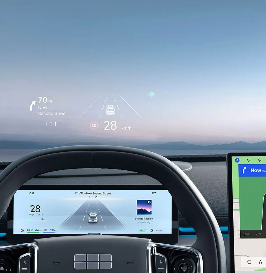 Visualiza velocidad, navegación y alertas directamente en el parabrisas sin desviar la mirada del camino.