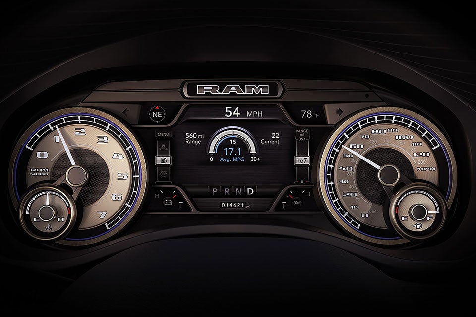 - Pantalla digital en panel de instrumentos. La pantalla digital premium de 7" presenta la información más importante para el conductor a todo color y con gráficos 3-D