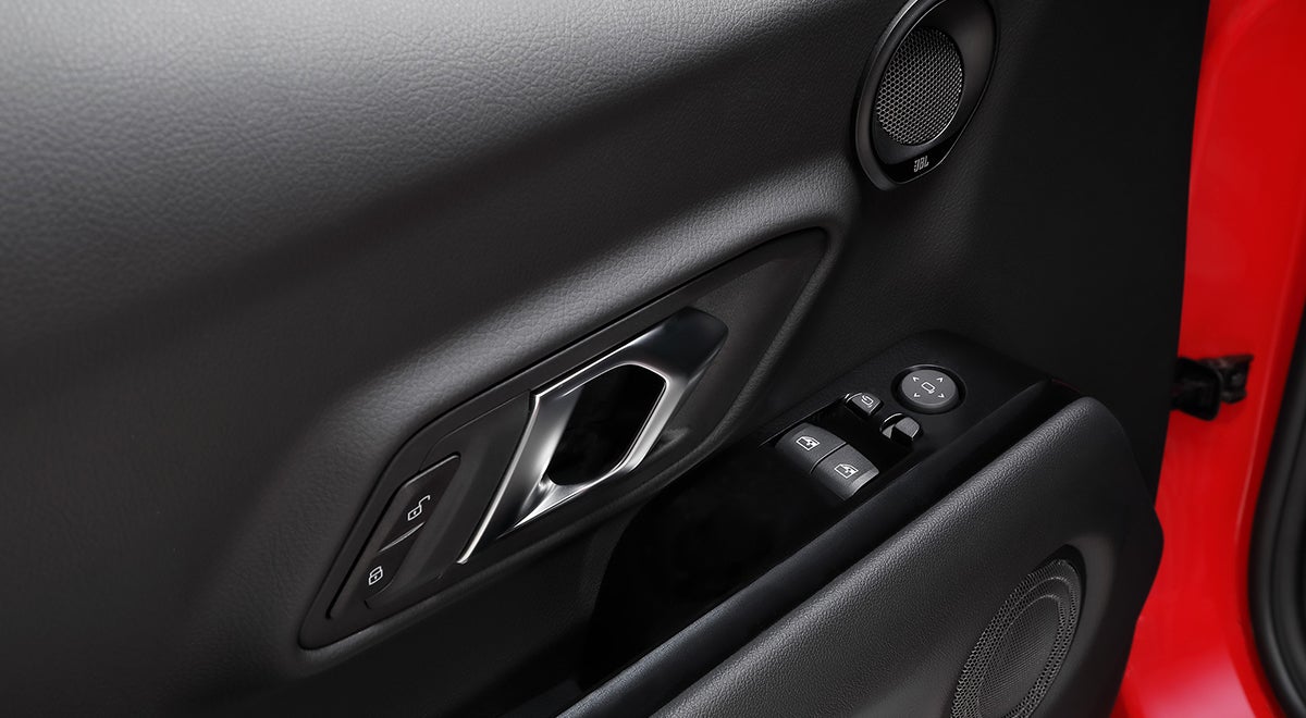 - Espejos laterales negros, electrocromático para el conductor, abatibles eléctricamente, con ajuste eléctrico, desempañador eléctrico y luces direccionales